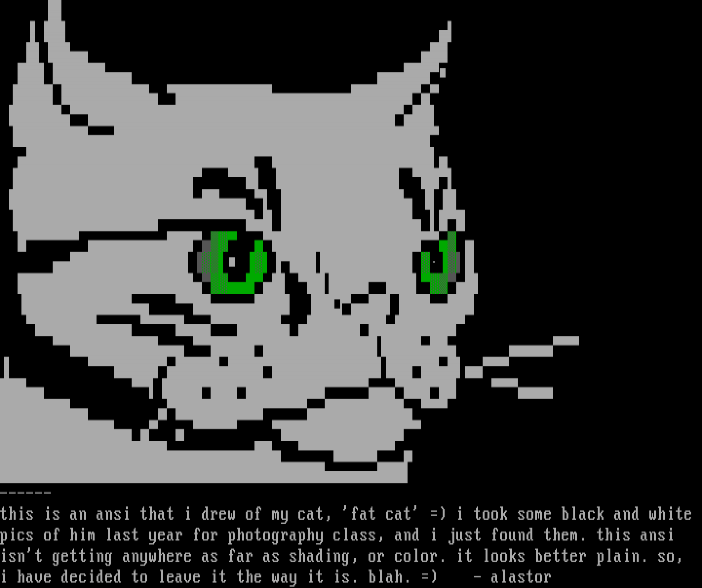 this is an ansi that i drew of my cat, fat cat i took some black and white