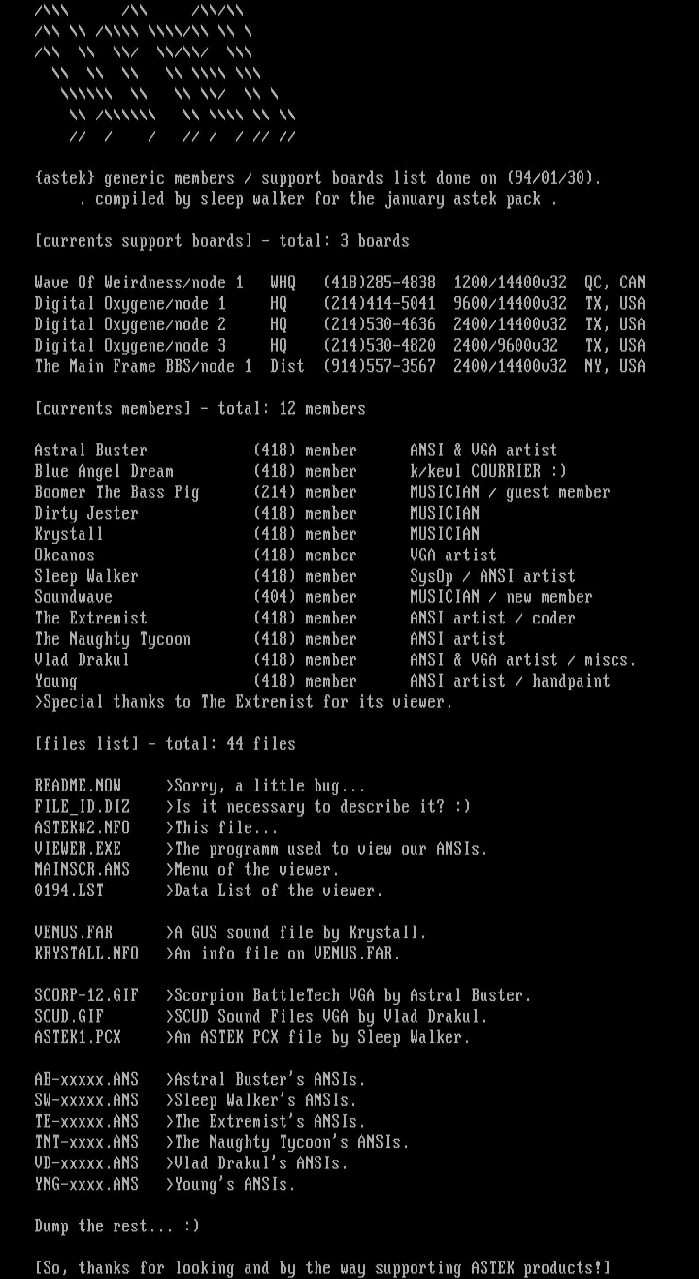 Vlad Drakul 418 member ANSI VGA artist / miscs.