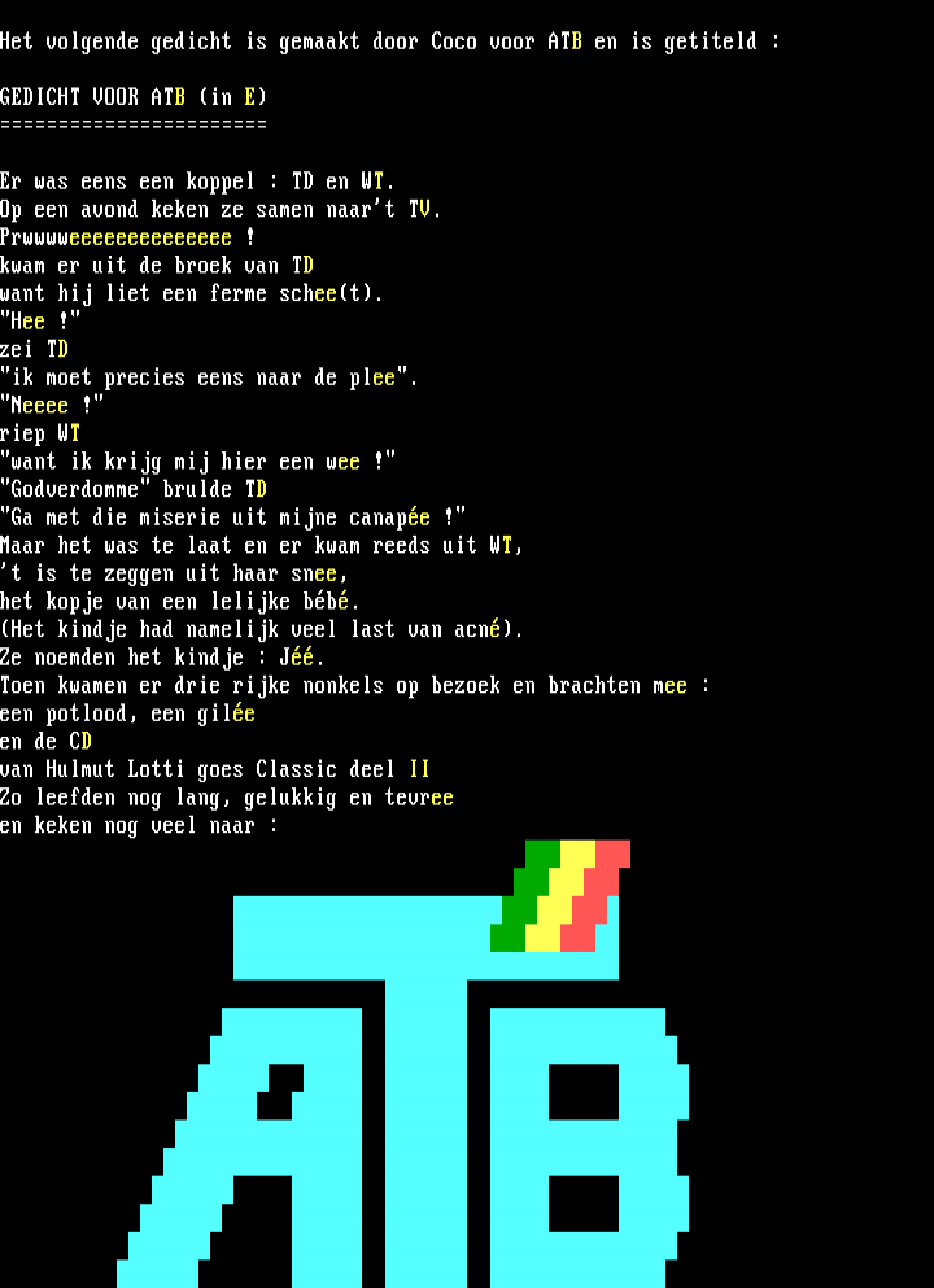 Het volgende gedicht is gemaakt door Coco voor ATB en is getiteld :