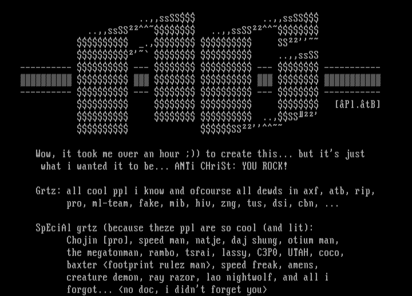 Grtz: all cool ppl i know and ofcourse all dewds in axf, atb, rip,