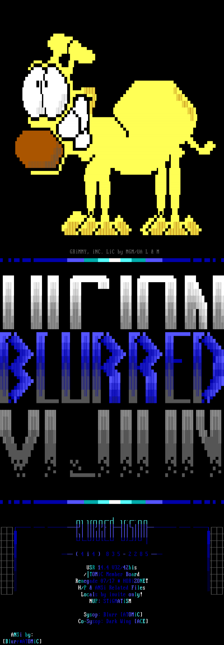 4 i 4 8 3 5 - 2 2 8 5 USR 14.4 V32/42bis /TOMiC Member Board Renegade 07/17 HORiZONET H/P ANSi Related Files Locals by invite only! NUP: STiGMATiSM