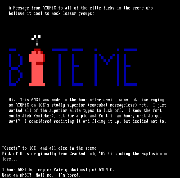 1 hour ANSI by Icepick fairly obviously of ATOMiC.