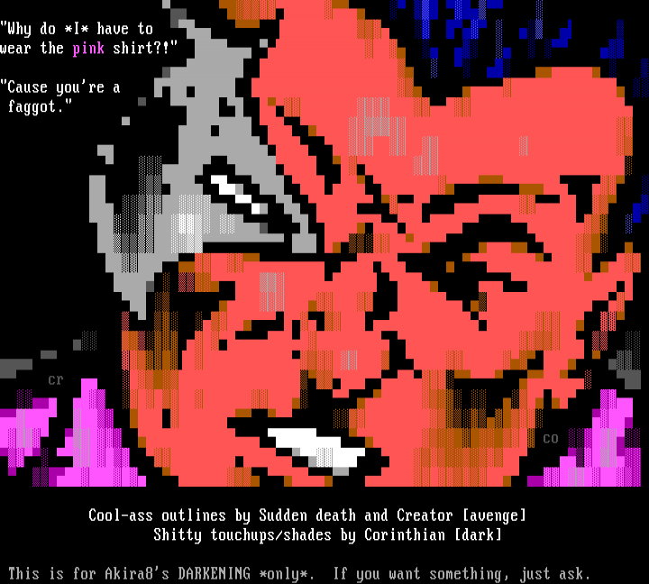 Why do *I* have to wear the pink shirt?! Cause youre a faggot.