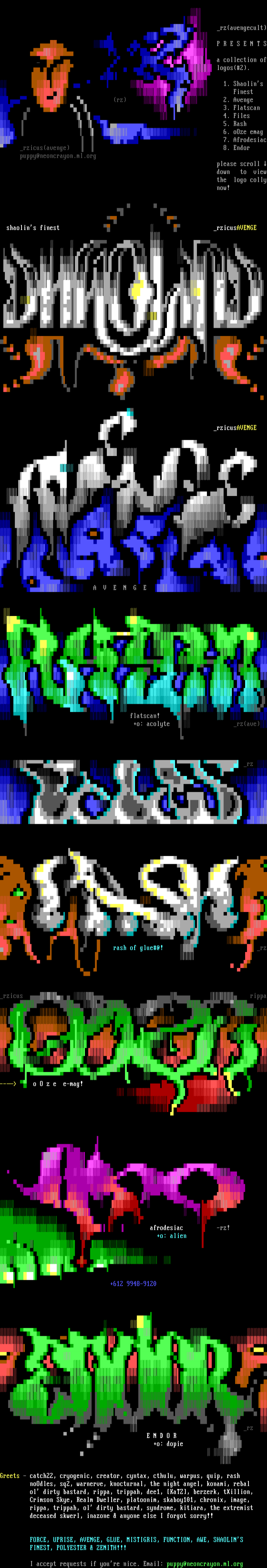 6. oOze emag 7. Afrodesiac rzicusavenge 8. Endor puppy@neoncrayon.ml.org please scroll down to view the logo colly now!