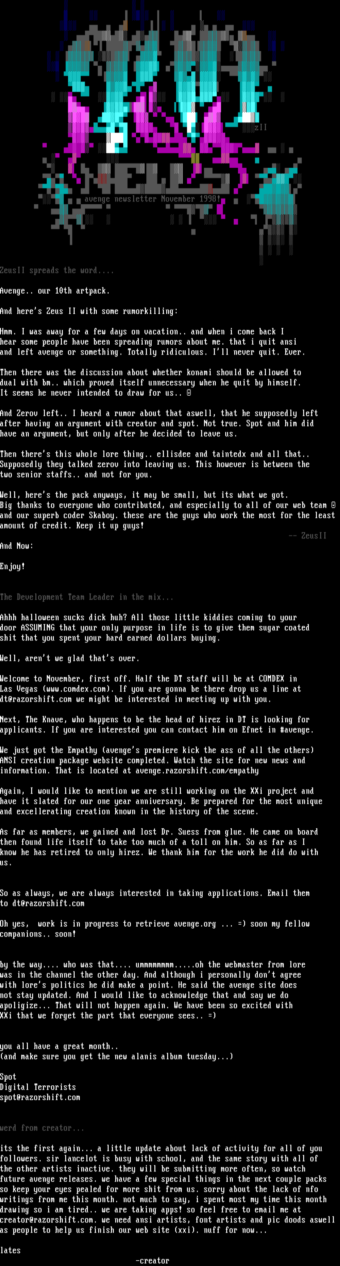 avenge newsletter November 1998!