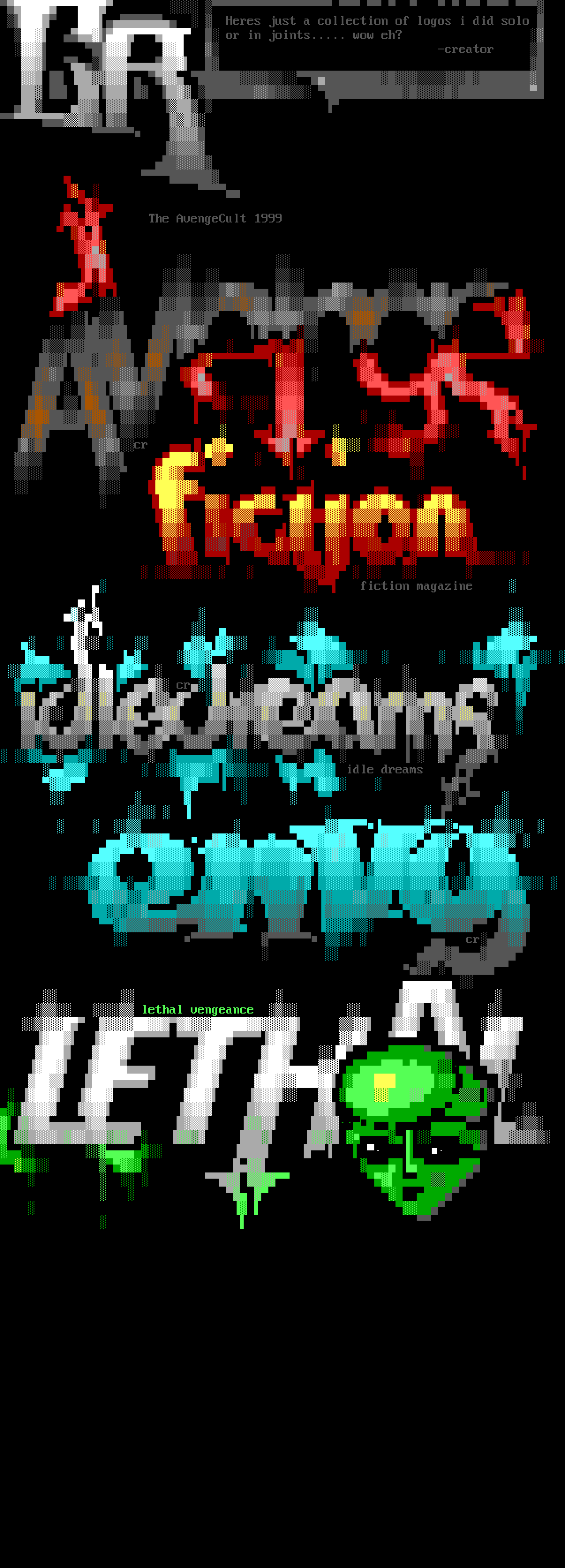 Heres just a collection of logos i did solo or in joints..... wow eh? -creator The AvengeCult 1999 cr