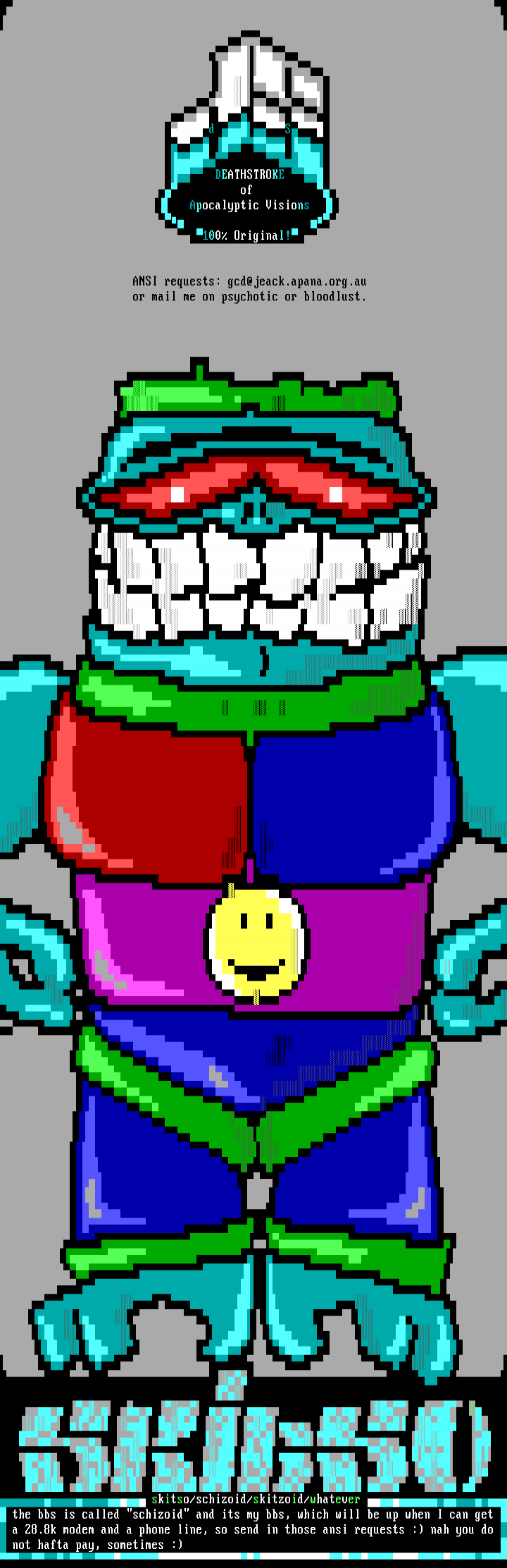 d S DEATHSTROKE of Apocalyptic Visions 100 Original! ANSI requests: gcd@jeack.apana.org.auor mail me on psychotic or bloodlust.