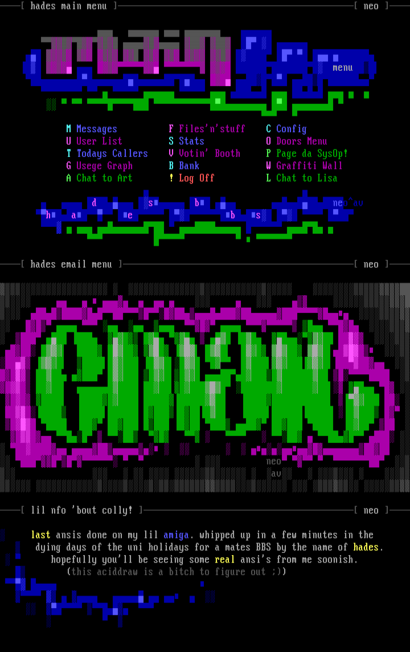 dying days of the uni holidays for a mates BBS by the name of hades.