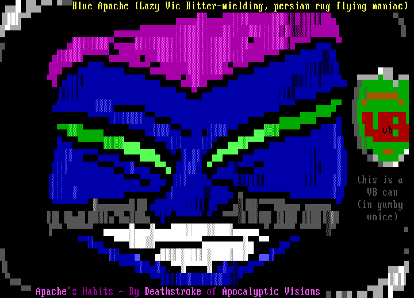 Blue Apache Lazy Vic Bitter-wielding, persian rug flying maniac