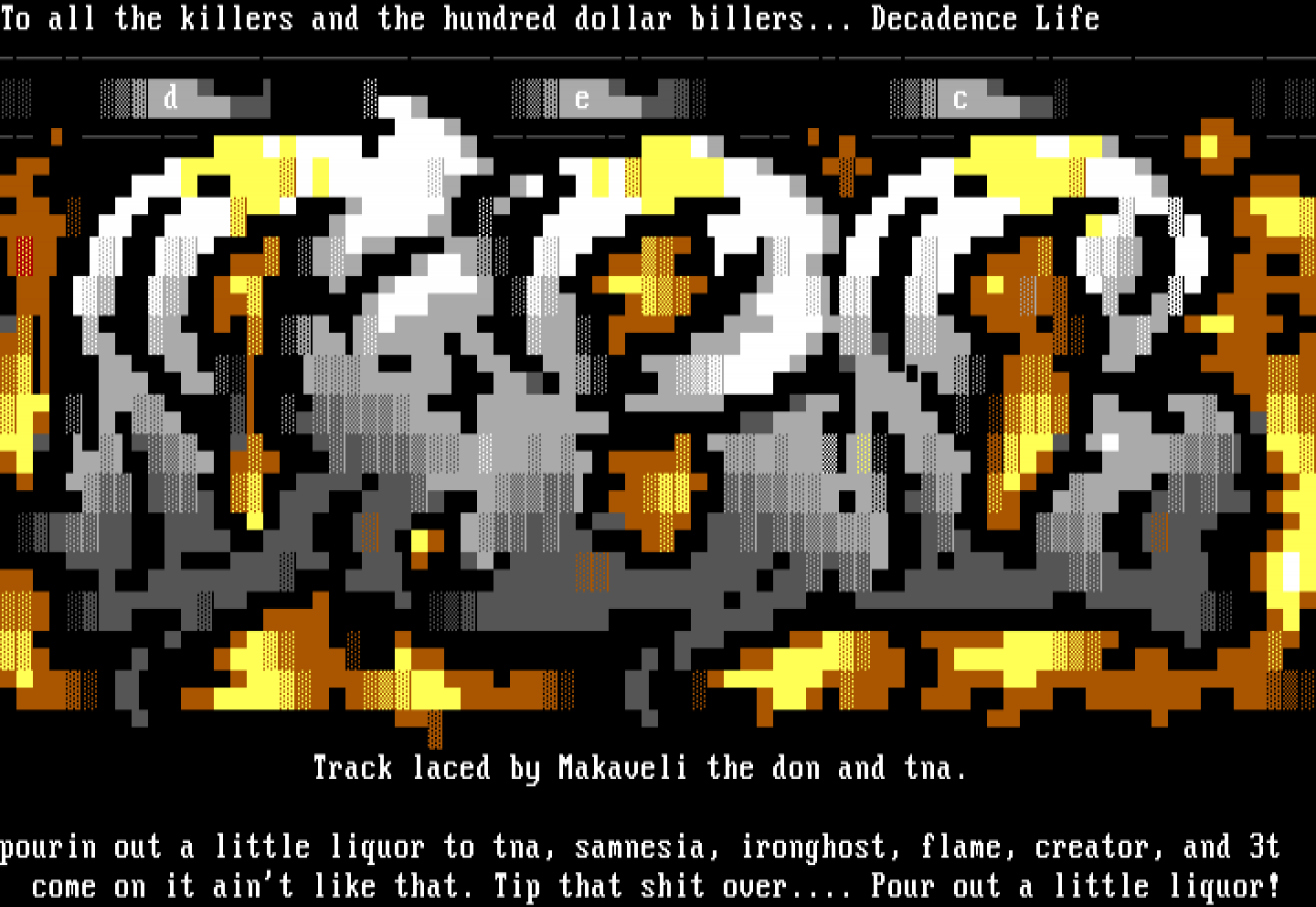 To all the killers and the hundred dollar billers... Decadence Life