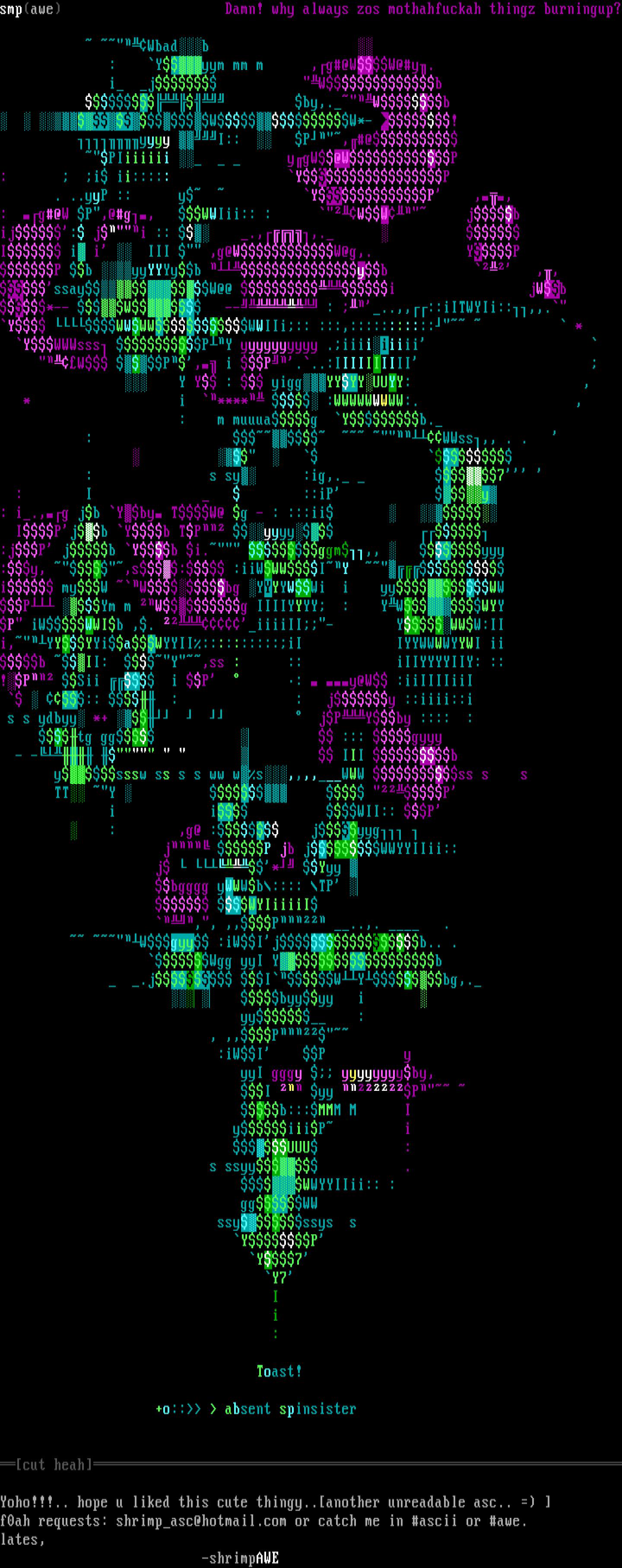 f0ah requests: shrimpasc@hotmail.com or catch me in ascii or awe.