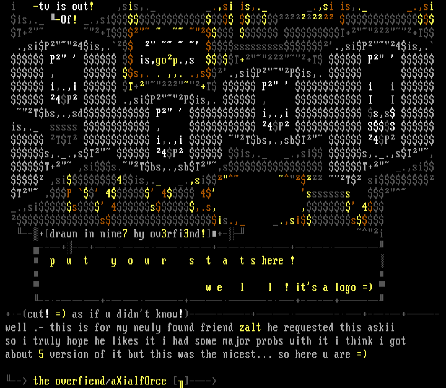 well .- this is for my newly found friend zalt he requested this askii