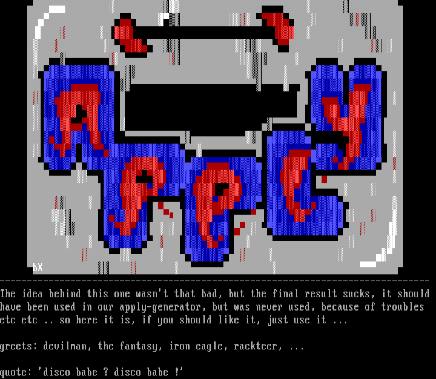 greets: devilman, the fantasy, iron eagle, rackteer, ...