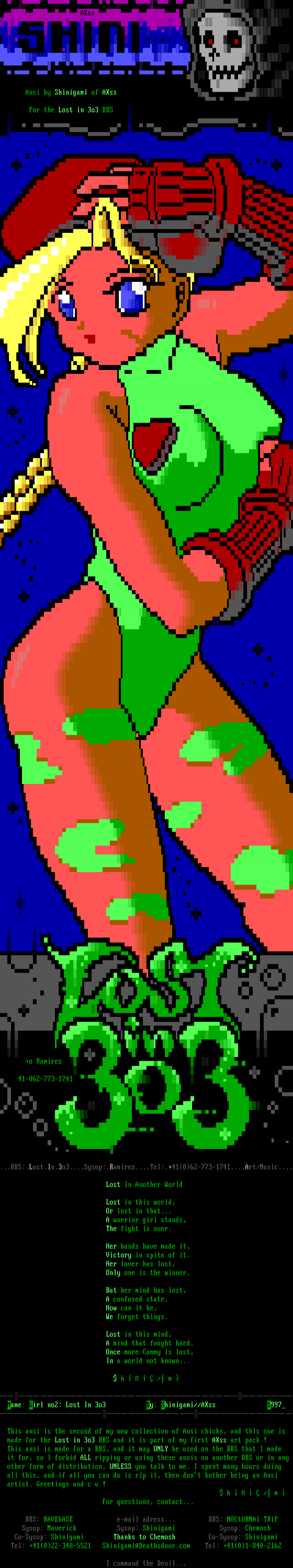 ...BBS:.Lost.In.3o3....Sysop:.Ramirez....Tel:.+41062-773-1741....Art/Music....