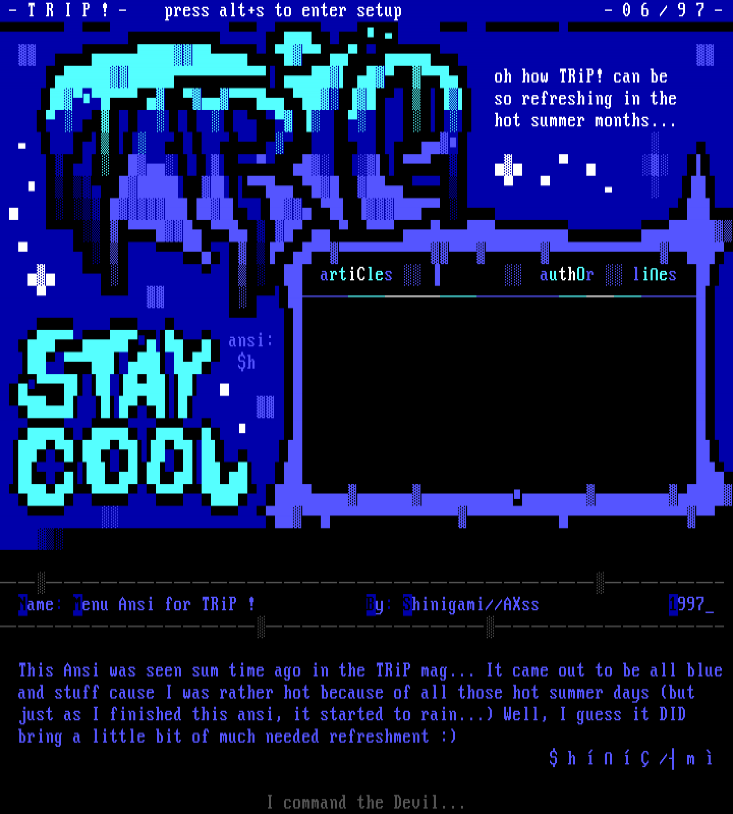 Name: Menu Ansi for TRiP ! By: Shinigami//AXss 1997