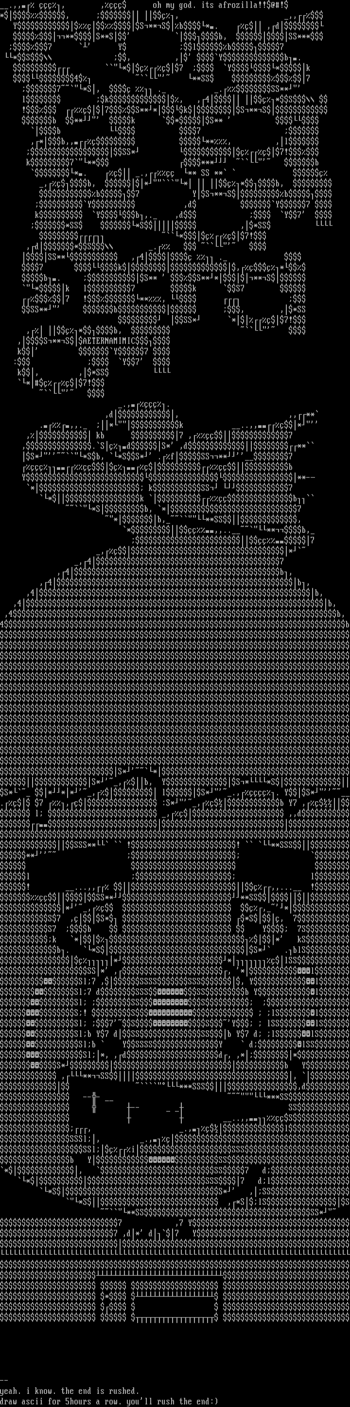 draw ascii for 5hours a row. youll rush the end:
