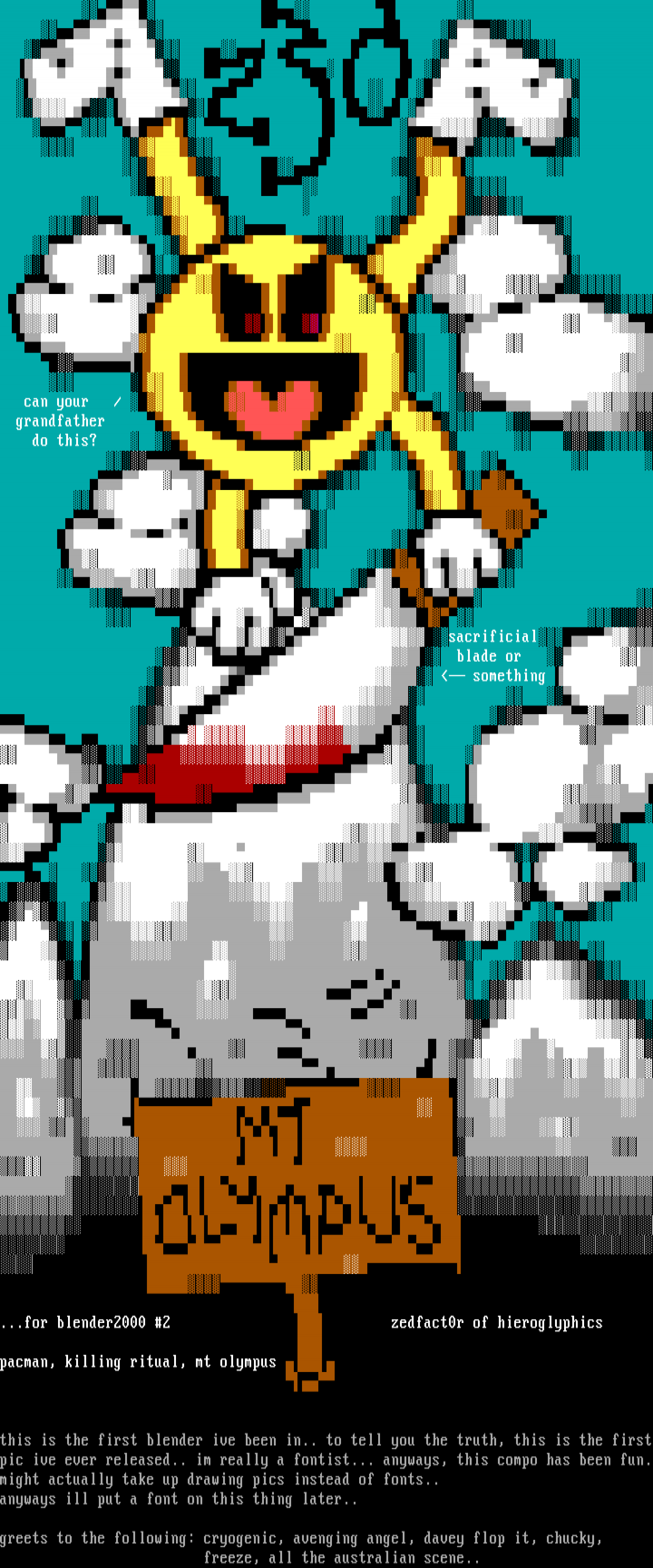 greets to the following: cryogenic, avenging angel, davey flop it, chucky, freeze, all the australian scene..