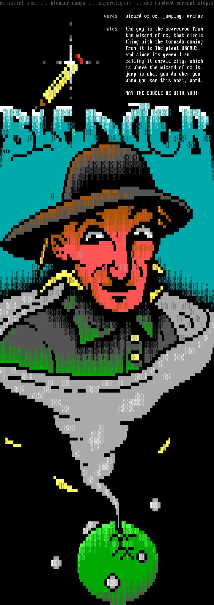 miniskirt ansi ... blender compo ... supereligion ... one-hundred percent stupid