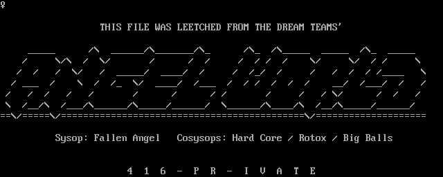Sysop: Fallen Angel Cosysops: Hard Core / Rotox / Big Balls