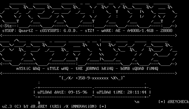 sYSOP: QuartZ - cOSYSOPS: G.O.D. - sTZ! - wARE: AE - A4OOO/1.4GB - 288OO