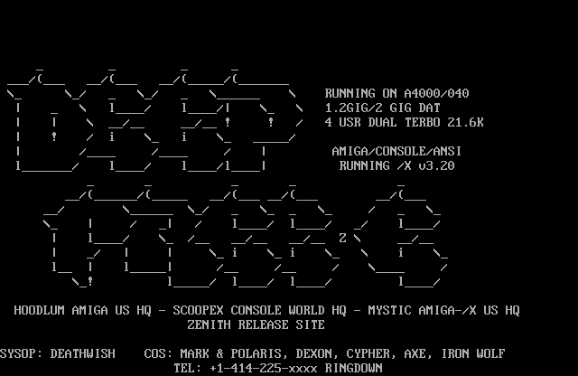 HOODLUM AMIGA US HQ - SCOOPEX CONSOLE WORLD HQ - MYSTIC AMIGA-/X US HQ