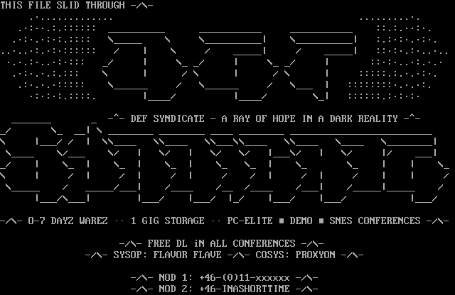 -/- SYSOP: FLAVOR FLAVE -/- COSYS: PROXYON -/-