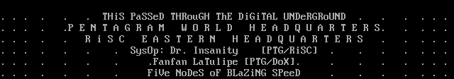 . . . . . . . SysOp: Dr. Insanity PTG/RiSC . . . . . . .