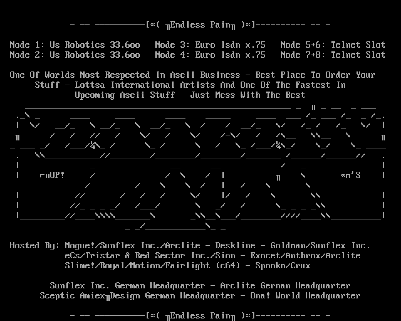 Node 1: Us Robotics 33.6oo Node 3: Euro Isdn x.75 Node 5+6: Telnet Slot