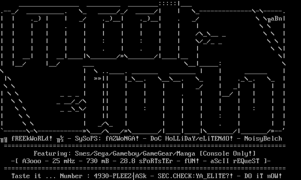 - A3ooo - 25 mHz - 730 mB - 28.8 sPoRTsTEr - fUN! - aScII rEQueST -