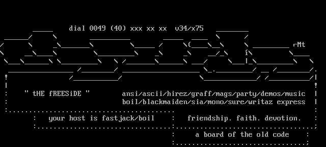 : tHE fREESiDE ansi/ascii/hirez/graff/mags/party/demos/music