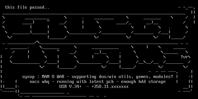 sysop : MAN O WAR - supporting dos/win utils, games, modules!