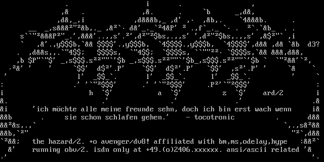 running obv/2. isdn only at +49.o2406.xxxxxx. ansi/ascii related