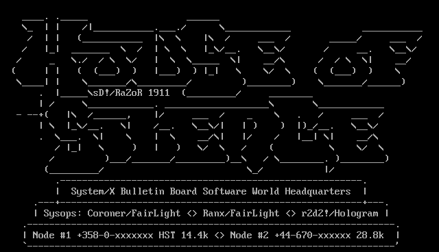 Sysops: Coroner/FairLight Ranx/FairLight r2d2!/Hologram