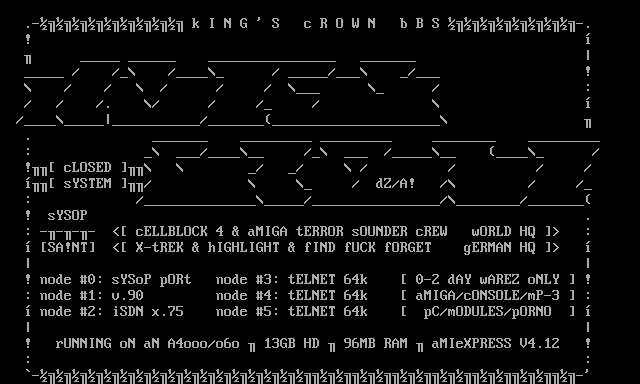 ! node 0: sYSoP pORt node 3: tELNET 64k 0-2 dAY wAREZ oNLY !