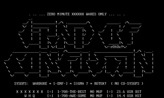 SYSOPS: WARDUKE * -ENF- * SIGMA 7 * ROTOX! NO CO-SYSOPS