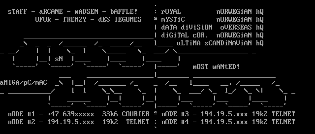 nODE 1 - +47 639xxxxx 33k6 COURIER nODE 3 - 194.19.5.xxx 19k2 TELNET