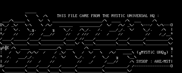 / THIS FILE CAME FROM THE MYSTIC UNIVERSAL HQ :