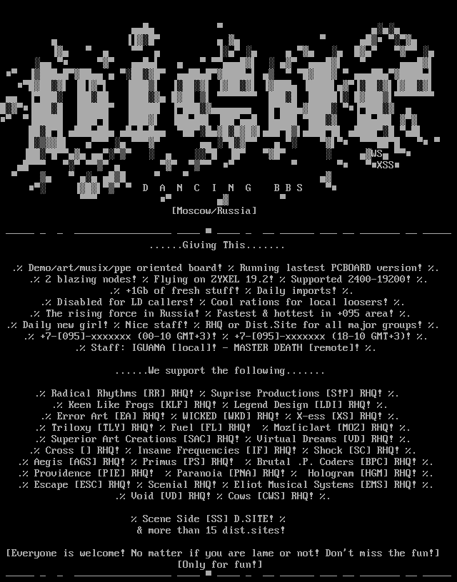 . Demo/art/musix/ppe oriented board! Running lastest PCBOARD version! .