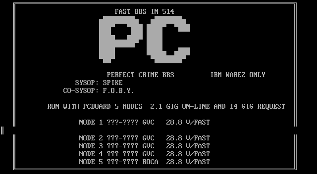 PERFECT CRIME BBS IBM WAREZ ONLY