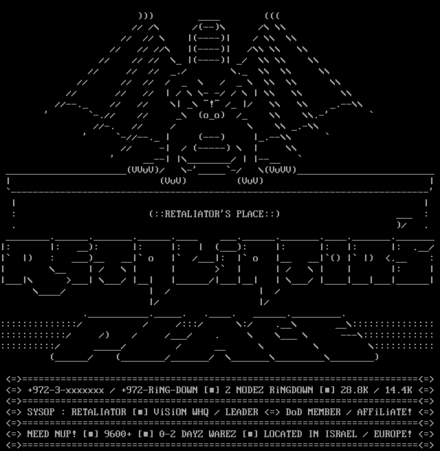 +972-3-xxxxxxx / +972-RiNG-DOWN 2 NODEZ RiNGDOWN 28.8K / 14.4K