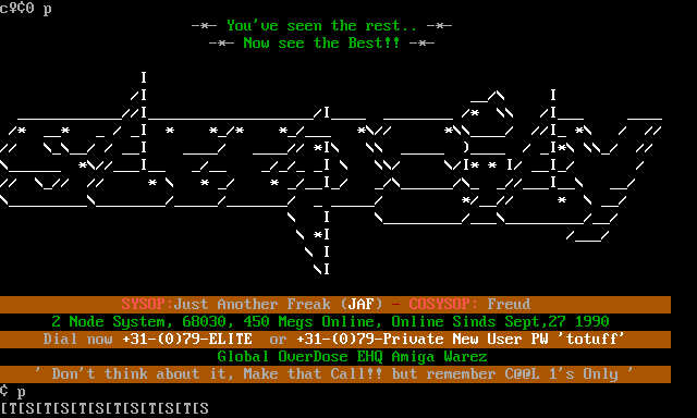 Dial now +31-079-ELITE or +31-079-Private New User PW totuff