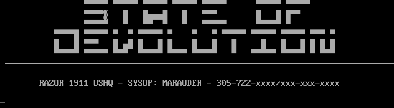 RAZOR 1911 USHQ - SYSOP: MARAUDER - 305-722-xxxx/xxx-xxx-xxxx