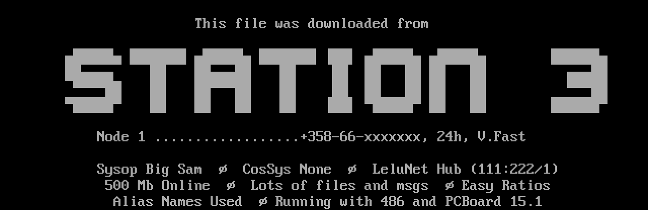 Sysop Big Sam CosSys None LeluNet Hub 111:222/1