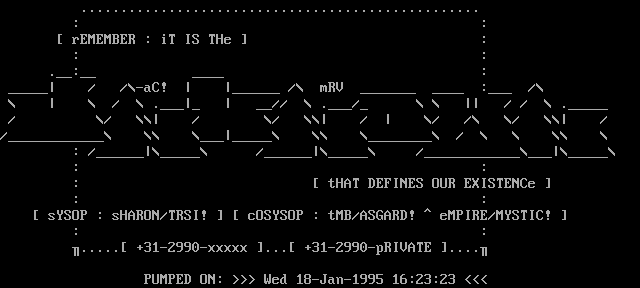 sYSOP : sHARON/TRSI! cOSYSOP : tMB/ASGARD! eMPIRE/MYSTIC!