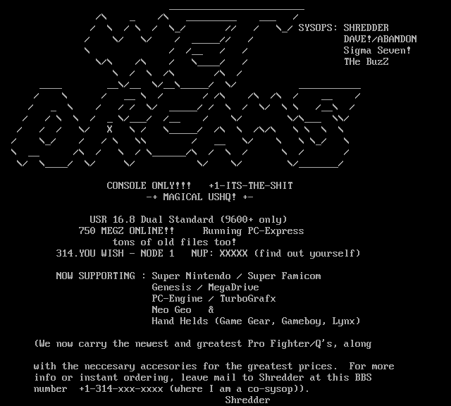 info or instant ordering, leave mail to Shredder at this BBS
