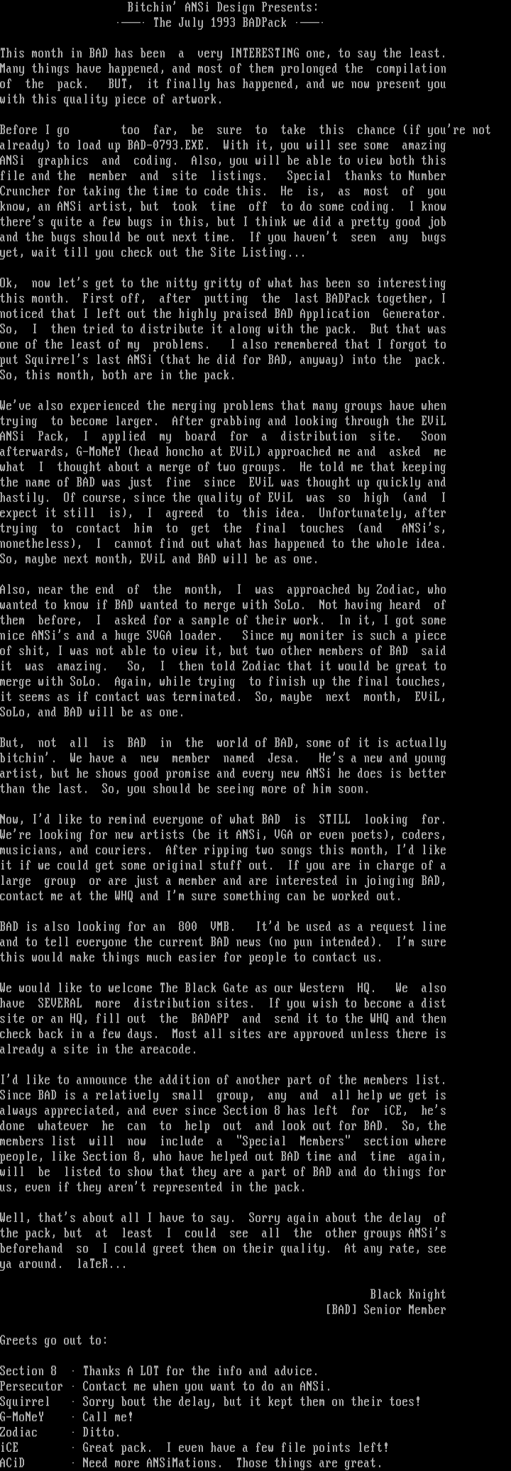 Were looking for new artists be it ANSi, VGA or even poets, coders,
