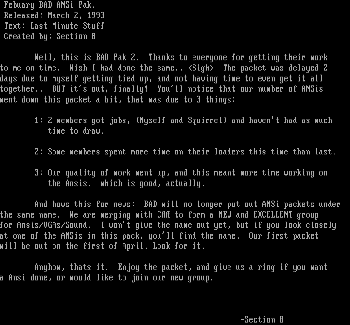 Well, this is BAD Pak 2. Thanks to everyone for getting their work