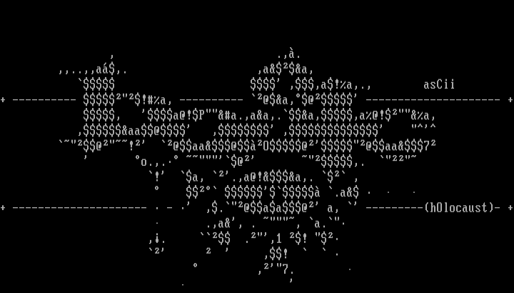 + --------------------- - ,.@aa@ a, ---------hOlocaust- + .,a, . , a.