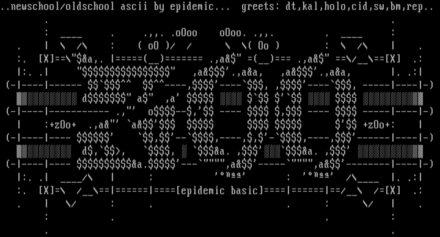 ..newschool/oldschool ascii by epidemic... greets: dt,kal,holo,cid,sw,bm,rep..