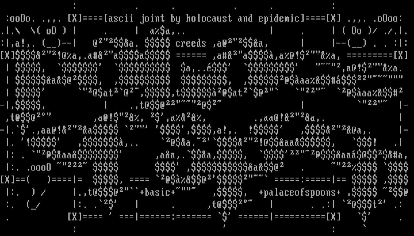 :ooOo. .,,. Xascii joint by holocaust and epidemicX .,,. .oOoo: